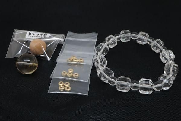 内容:14kgfパーツ×3、12mmヒマラヤ杉ビーズ、15mmシトリンビーズ、9mm水晶キューブカットブレスレット
