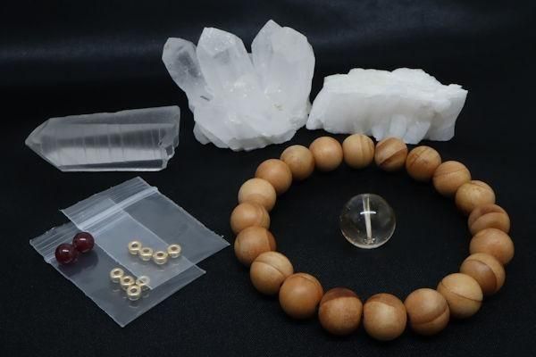 内容:14kgfパーツ×2、15mmシトリンビーズ、6mmルビー2粒セット、10mmヒマラヤ杉ブレスレット、ファントムレムリアンシード、ヒマラヤ水晶原石