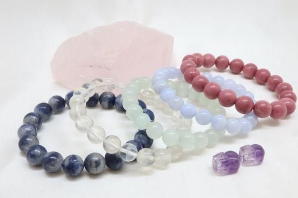 内容:アメジストファントム貔貅×2、8mmブルーレースアゲートブレスレット、10mmピーモンタイトブレスレット、8mmグリーンカルサイトブレスレット、9mmカラーレスアンデシンブレスレット、10mmデュモルチェライトインクォーツブレスレット、ローズクォーツ原石
