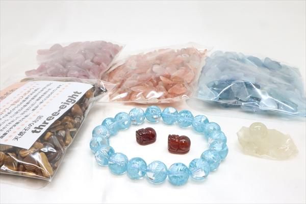 内容:サンストーン細石、ディープローズクォーツ細石、タイガーアイ細石、アクアマリン細石、オレンジガーネット貔貅×2、9mmリビアングラスビーズ原石台座セット、10mm天然水晶龍彫りブレスレット