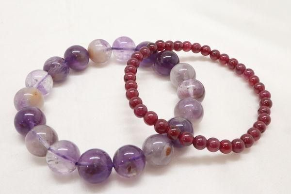 内容:5mmルビーブレスレット、11mmガーデンアメジストブレスレット