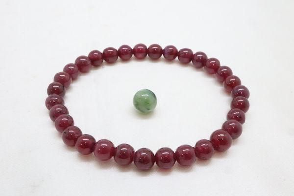 内容:6mmルビーブレスレット、8mm日高翡翠ビーズ