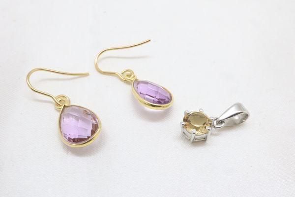 【志穂様専用】シトリンペンダント、ピンクアメジストピアス