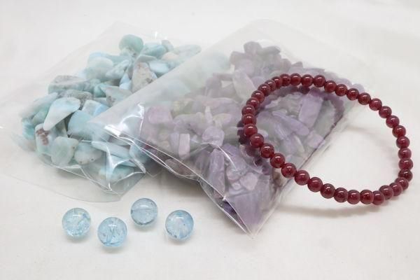 内容:ラリマー細石、チャロアイト細石、5mmルビーブレスレット、9mmブルートパーズビーズ4個セット