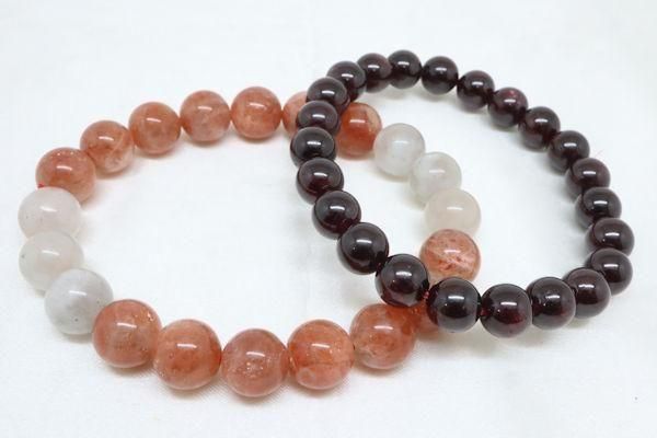 内容:10mmアルーシャサンストーンブレスレット、8mmガーネットブレスレット